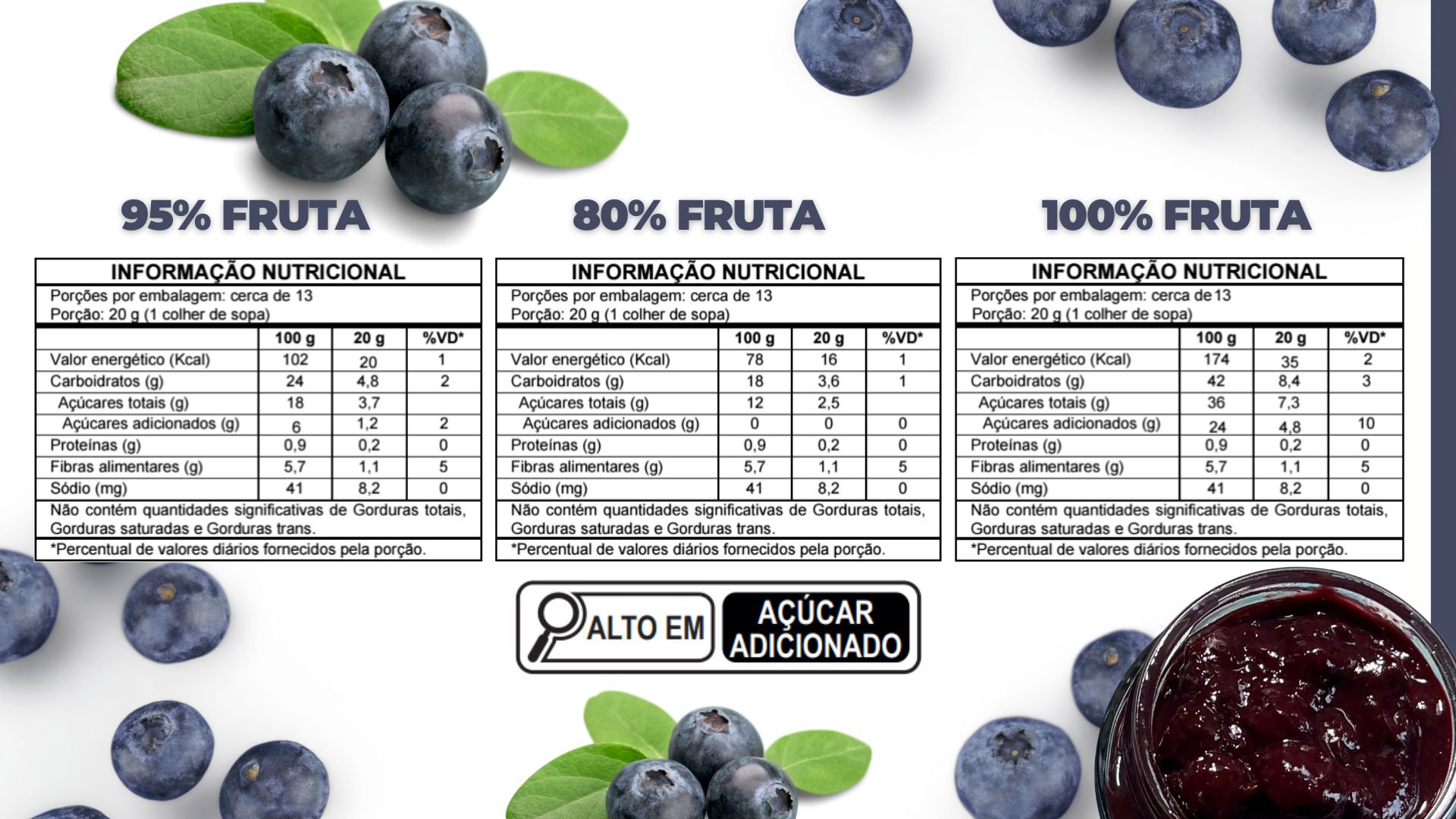 Ingredientes: Mirtilo 100% fruta, pectina de maçã verde e suco de limão.